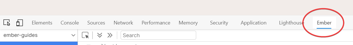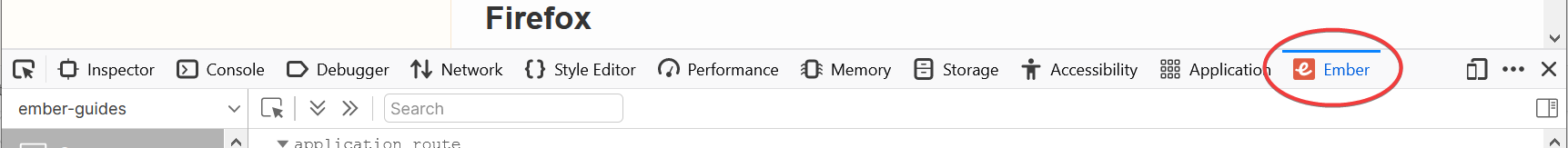 Once installed, go to an Ember application, open the Developer Tools, and click on the Ember tab.
